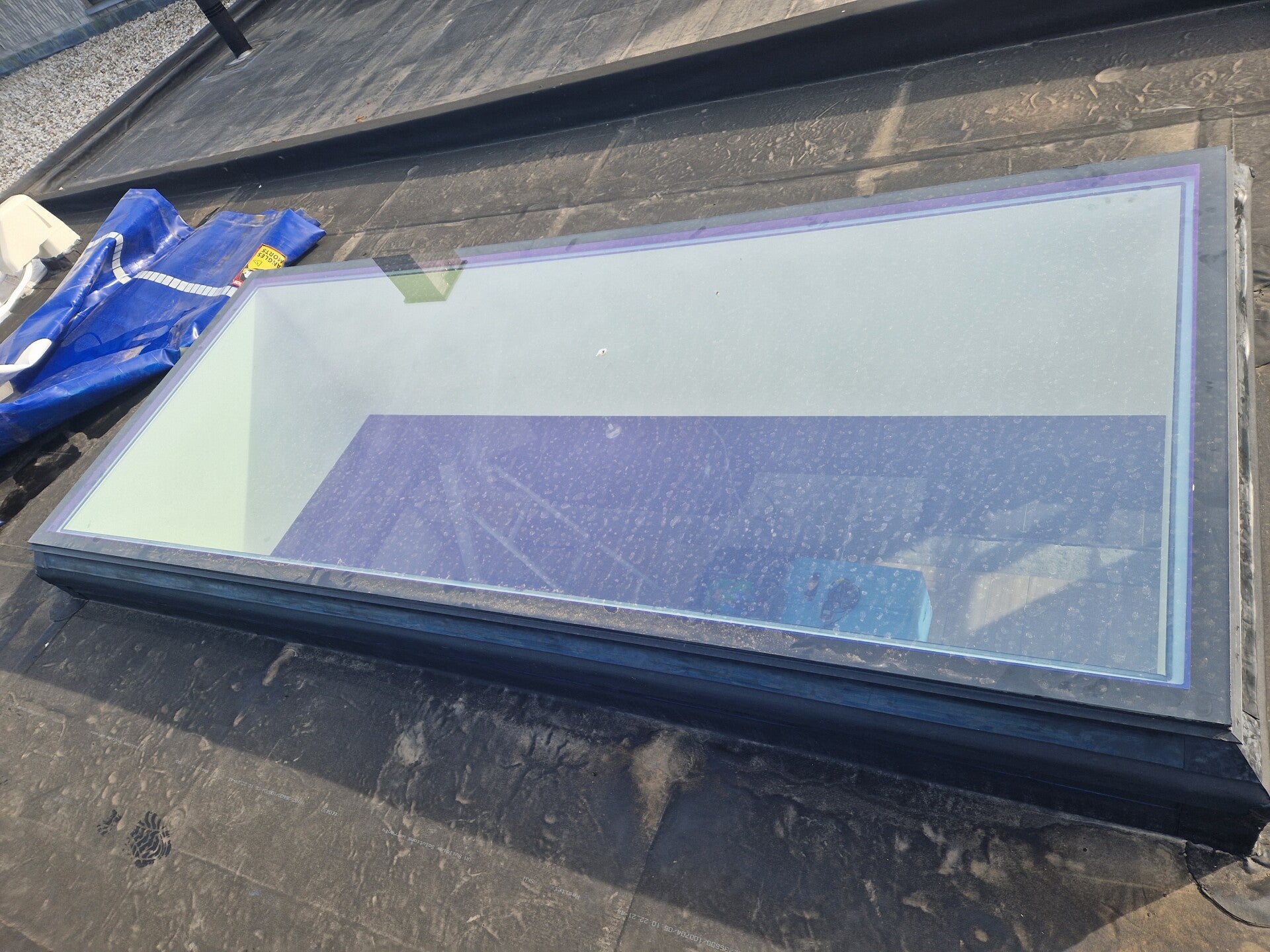 Reken tot een timmermaat van 1400 x 5500 mm op een lichtstraat in één glasplaat. Het resultaat: geen naden, geen onderbrekingen, alleen een minimalistisch geheel met een ononderbroken doorzicht van binnen naar buiten. Groter formaat is ook mogelijk met opgedeelde beglazing.